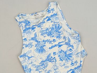 Bershka – damskie body na ramiączkach - Model: body zapinane w kroku na napy - Kolor: ecru/kremowy - Materiał: prążkowana, elastyczna dzianina (miękka, dopasowująca się do sylwetki) - Fason: cienk...