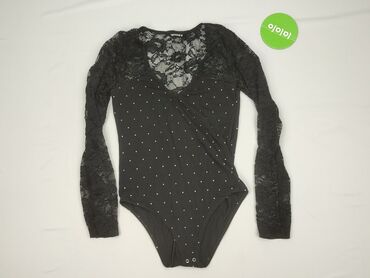 Czarne body damskie Terranova - Marka: Terranova - Rozmiar z metki: M - Fason: body z krótkim rękawem - Dekolt: głęboki, zaokrąglony, z wiązaniem/sznureczkiem na środku przodu - Zapięcie: napy w k...