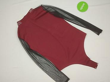 Body damskie z długim rękawem, bordowe z siateczkowymi rękawami.