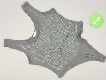 Body damskie Sinsay - Model: body z krótkim rękawem - Rozmiar: XL (na metce) - Kolor: jasnoszary w delikatne, pionowe prążki - Dekolt: zaokrąglony z ozdobnym wiązaniem z przodu - Zapięcie: zatrzas...