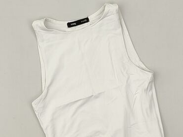 Białe body damskie Sinsay - Rozmiar: S (metka “S”) - Krój: bez rękawów, klasyczny okrągły dekolt - Zapięcie: napy w kroku - Kolor: biały - Materiał: gładka, elastyczna dzianina (miękka, przylegają...