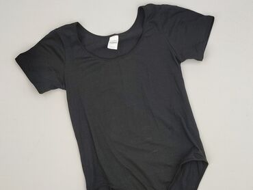 Czarne body damskie Petite Peigile - Krój: klasyczne body z krótkim rękawem i okrągłym dekoltem - Zapięcie: napy na dole (potrójny rząd haftek do regulacji) - Materiał: 95% bawełna, 5% elastan – m...Stan: