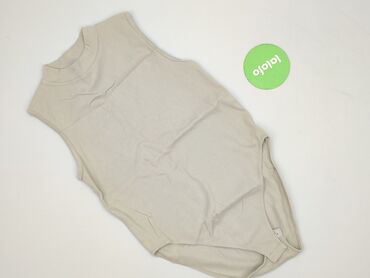 Body damskie, beżowe. - Fason: klasyczne body z krótkim rękawem, dekolt w kształcie łódki/łagodny okrągły, zapięcie na napy w kroku. - Materiał: 95% bawełna, 5% elastan – miękka, elastyczna dziani...Stan: