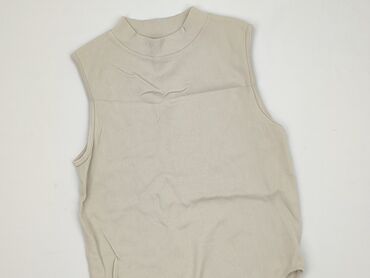 Body damskie bez rękawów w kolorze jasnobeżowym.