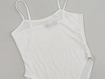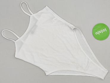 Białe body damskie Sinsay, rozmiar S. - Krój: bez rękawów, głęboki dekolt V z przodu, wysokie wycięcia po bokach - Zapięcie: zatrzaski w kroku ułatwiające zakładanie - Materiał: elastyczna, miękka...