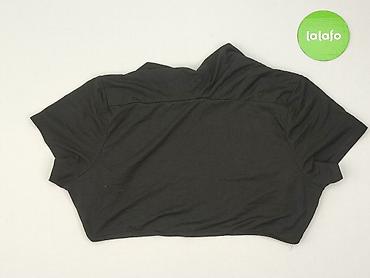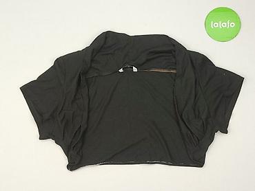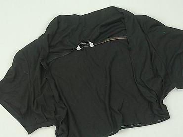 Bolero damskie, krótkie, czarne - Krój: bolerko z otwartym przodem, lekko zaokrąglone poły, krótki rękaw - Rozmiar: M (metka widoczna na zdjęciu) - Materiał: gładka, lekko połyskująca tkanina o sa...