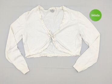 Przewiewny biały bolerko/kardigan wiązany z przodu - Krój: krótki, z głębokim dekoltem V, wiązanie na węzeł z przodu - Rękaw: do łokcia/połowa długości - Materiał: lekka, półprzezroczysta tkanina ...