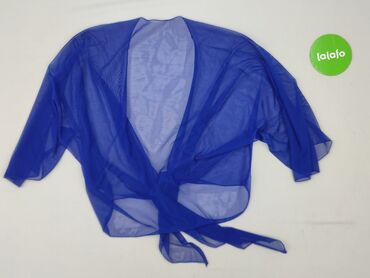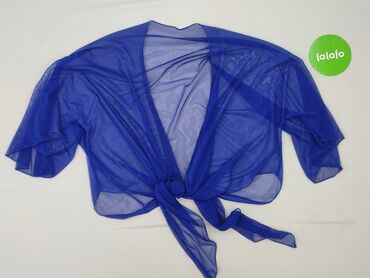Damska narzutka/chusta z lekkiego szyfonu - Kolor: jasny błękit - Krój: swobodna, ażurowa narzutka bez zapięcia; przód zakończony asymetrycznym, trójkątnym panelem; rękawy 3/4 z mankietem - Materi...
