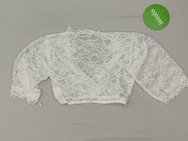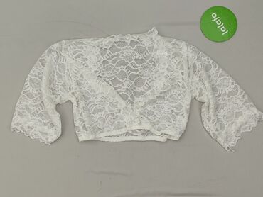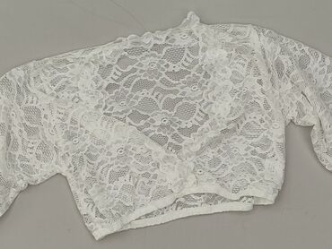 Ażurowy kardigan damski w kolorze śmietanowej bieli. - Fason: lekki, bez zapięcia, długi rękaw. - Tył oraz górne partie przodu z prześwitującej siateczki zdobionej haftowanymi kwiatkami 3D. - Przó...Stan: