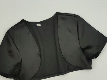 - Krój: krótkie bolerko do sukienki lub topu, bez zapięcia, zaokrąglone poły z przodu, krótkie rękawy