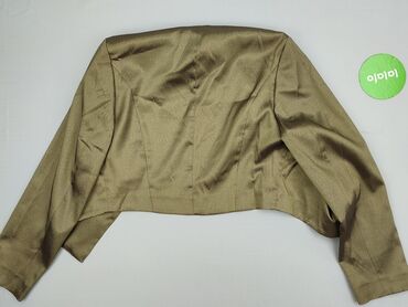 Krótki bolerko/żakiecik damski - Kolor: czarny, satynowy połysk - Krój: krótkie bolerko z krótkim rękawem, szeroki kołnierz/szala, wykrojony przód bez zapięcia - Rozmiar z metki: 34 - Skład materi...