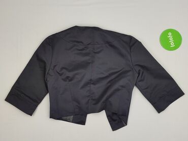 Bolero damskie, krótkie, czarne - Krój: bolerko z otwartym przodem, lekko zaokrąglone poły, krótki rękaw - Rozmiar: M (metka widoczna na zdjęciu) - Materiał: gładka, lekko połyskująca tkanina o sa...