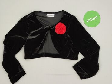 Czarne bolerko marki Shein, idealne do stworzenia eleganckich stylizacji. Charakteryzuje się krótkim krojem oraz długimi rękawami z welurowym wzorem w paski. Bolerko wykonane jest z materiału z dod...Stan: