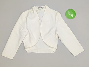Bolero damskie WDX – rozmiar 36 - Kolor: śmietankowa biel/ecru - Krój: krótkie bolerko z zaokrąglonymi połami z przodu, bez zapięcia - Rękaw: krótki - Kołnierz: stójka - Materiał: gładka, lekko po...Stan: