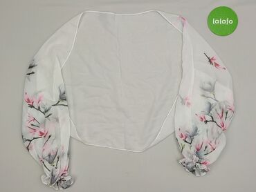 Bolerko damskie, białe, satynowe - Krój: krótkie bolerko z zaokrąglonymi połami z przodu, bez zapięcia - Rękawy: długie - Kolor: śnieżnobiały - Tkanina: gładka, z eleganckim satynowym połyskiem - ...