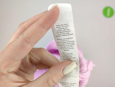 - Metki pielęgnacyjne: pranie w 30°C, nie wybielać, nie suszyć w suszarce, prasować na lewej stronie, nie czyścić chemicznie, prać z podobnymi kolorami