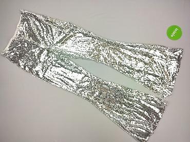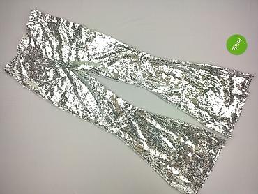Damskie spodnie z połyskiem – srebrne - Fason: dzwony/lekko rozszerzane nogawki - Talia: elastyczna guma, wysoki komfort noszenia - Materiał: 95% poliester, 5% elastan – elastyczne, miękkie, z met...