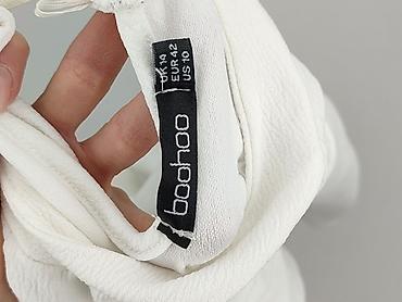 Boohoo – biała bluzka/tunika damska z falbaną - Marka: Boohoo - Model: luźna tunika z odcięciem w pasie i falbaną na dole - Kolor: biały - Rozmiar z metki: UK 14 / EU 42 / US 10 - Skład: 100% poli...