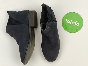 Damskie botki typu Chelsea - Kolor: czarny - Rozmiar: 38 (oznaczenie na podeszwie) - Cholewka: zamszopodobna, elastyczne panele po bokach ułatwiają zakładanie - Podeszwa: gumowa z wyraźnym bieżnik...Stan: