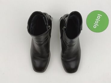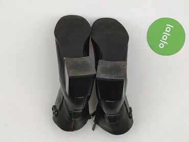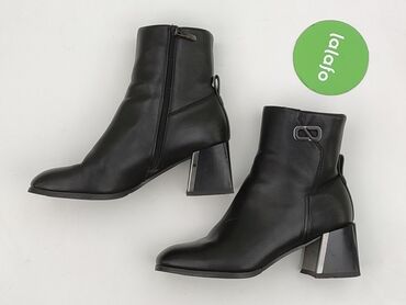 Czarne damskie botki na wysokim obcasie typu platformy - Rozmiar: 36 (oznaczenie wewnątrz i na podeszwie) - Model: LEI-59 - Kolor: czarny, matowy - Cholewka: gładka, bez zamka, z elastycznymi wsta...
