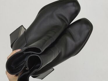 Skórzane botki biker ZARA – rozmiar 40 - Model: motocyklowe/rockowe, za kostkę z wyższą cholewką - Kolor: czarny - Materiał wierzchni: skóra naturalna (gładka) - Zapięcie i regulacja: trzy metalow...