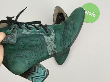 Czarne damskie botki na wysokim słupku z platformą - Rozmiar: 35 (oznaczenie na podeszwie) - Fason: sznurowane botki/ankle boots - Obcas: wysoki, masywny słupek - Platforma: tak – z przodu podwyżs...