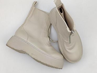 Botki damskie skórzane z ćwiekami - Model: krótkie botki z luźną cholewką i paskiem z klamrą - Kolor: kremowy/ecru - Materiał: skóra naturalna (zewnętrzna), skórzana wkładka; solidna, gumowa podes...