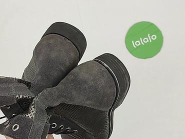 Damskie botki na obcasie – szary zamsz syntetyczny - Rozmiar: 38 (oznaczenie na podeszwie) - Kolor: ciemnoszary/antracyt - Cholewka: zamszowa (materiał syntetyczny) - Wnętrze: materiał - Podeszwa:...Stan: