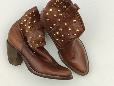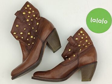 Damskie botki skórzane Fabulous - Kolor: ciemnobrązowy - Materiał wierzchni: skóra naturalna (gładka + wstawki z nubuku/zamszu po bokach) - Zapięcie: suwak po wewnętrznej stronie cholewki - Obcas:...