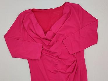 Sukienka damska w kolorze intensywnego różu (fuksja), ołówkowa, z elastycznej tkaniny: - Skład: 95% poliester, 5% elastan (metka na zdjęciu) - Fason: dopasowany, długość za kolano - Dekolt: koperto...