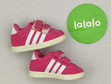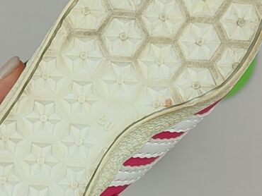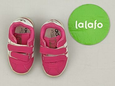 Różowe sandałki niemowlęce - Rozmiar: 19 (oznaczenie wewnątrz buta) - Kolorystyka: jasny róż z ciemnoróżowymi elementami - Zapięcie: dwa rzepy – przy kostce i na podbiciu – łatwe dopasowanie i szy...