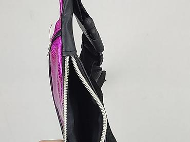 - Materiał: front z błyszczącej, lakierowanej tkaniny, tył z czarnej ekoskóry
