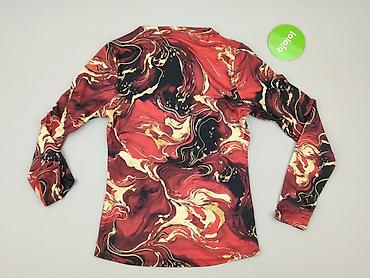 Bluzka damska J&J, rozmiar S/M. - Wzór: czerwono-biały, kwiatowy/ornamentowy all-over - Krój: lekko taliowany, dłuższy dół z zaokrąglonym brzegiem - Dekolt: w serek z krótką listwą guzikową (3 biał...