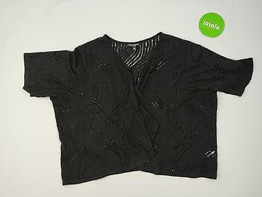 Ażurowy czarny bolerko/kardigan damski Just Elegance - Marka: Just Elegance - Rozmiar z metki: M/L - Fason: krótkie bolerko, otwarte z przodu (bez zapięcia) - Rękaw: krótki - Splot: szydełkowy/kor...