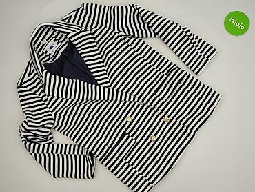 Marynarka damska Reserved, rozmiar 36 - Klasyczny krój bez zapięcia - Wzór w poziome granatowe pasy na białym tle (styl marynarski) - Długość do bioder - Kołnierz z klapami - Rękawy 3/4 - Dwie nas...