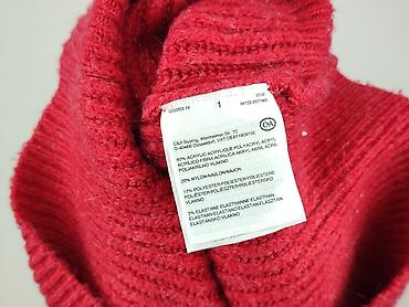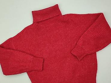 Sweter damski z golfem, czerwony. - Krój: dopasowany, prążkowany splot na całej powierzchni, długi rękaw, wysoki golf. - Rozmiar z metki: S/M. - Materiał: 100% akryl (metka „KEEP AWAY FROM FIRE”)....