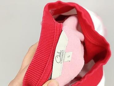 - Kolory: różowy, czerwony oraz biały, z geometrycznym panelem w kształcie litery V z przodu