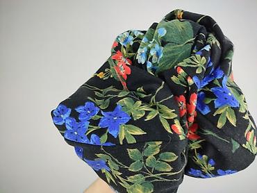 - Wzór: kwiaty i liście w odcieniach niebieskiego, czerwieni, zieleni i żółci na czarnym tle