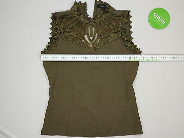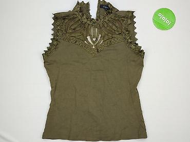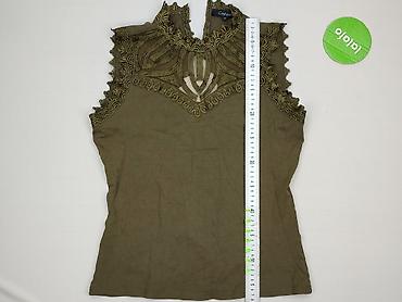 Damska bluzka bez rękawów z koronki, oliwkowa/khaki - Fason: dopasowany, lekko taliowany - Dekolt: okrągły - Materiał: miękka, elastyczna koronka z misternym wzorem paisley; półprzezroczysta (wyma...