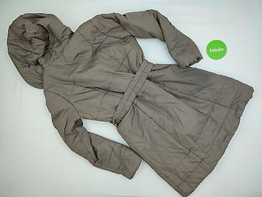- Fason: ocieplany płaszcz do połowy uda, taliowany paskiem z elastyczną gumą i metalową klamrą