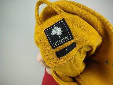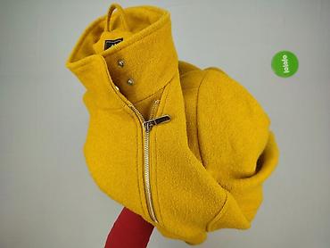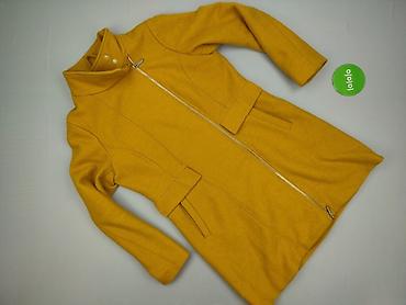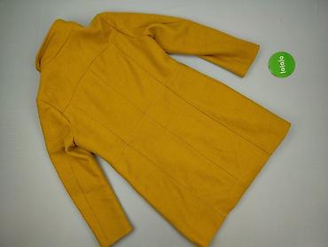 Żółty damski płaszcz wełniany z podszewką - Rozmiar: EU 40 (UK 12) – metka na zdjęciu - Krój: krótki, lekko rozkloszowany, stójka - Zapięcie: duże guziki z przodu (asymetryczne ułożenie), pasek z ...