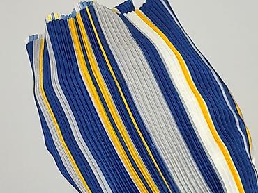 - Wzór: pionowe paski w odcieniach granatu, bieli, szarości i żółci – wysmuklają sylwetkę i dodają energii stylizacji