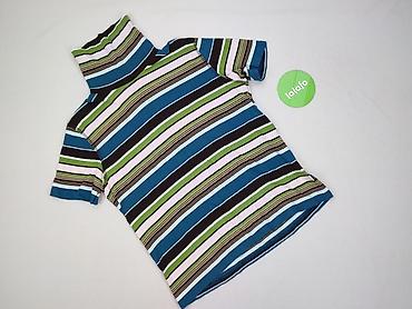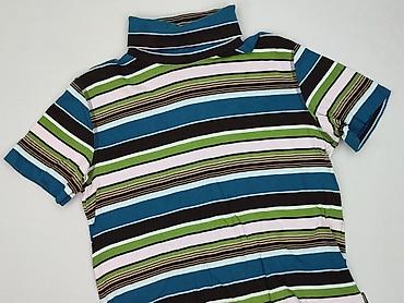 Bluzka damska CECIL, rozmiar XL, z krótkim rękawem i wysoką, miękką stójką. Model w poziome, wielokolorowe pasy: turkus, zieleń, błękit, róż i czerń. Dzianina elastyczna, miła w dotyku.