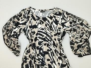 Bluzka damska SWEETCE PARIS, rozmiar S. - Wzór: panterka (beż/czarny/ecru), drobna faktura tła imitująca skórę - Krój: luźny, swobodny - Rękawy: długie, lekko bufiaste z mankietem bez zapięcia - D...
