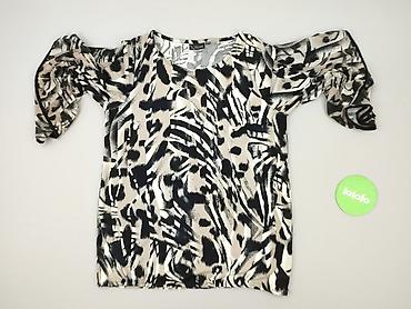 Bluzka damska w panterkę, rozmiar S - Krój: klasyczny T-shirt z krótkim rękawem, efektowne bufiaste rękawy z marszczeniami. - Wzór: cętki w odcieniach czerni, brązu i beżu; miejscami delikatny, po...Rozmiar: