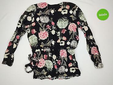 Damska bluzka w kwiaty - Krój: kopertowy przód z falbaną, elastyczna gumka w pasie podkreślająca talię - Rękawy: długie, zakończone gumką i falbanką - Dekolt: V (kopertowy), z delikatną falbaną pr...