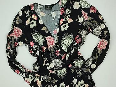 Bluzka damska z dzianiny w kwiaty - Kolor: czarny w drobny, wielobarwny kwiatowy print (odcienie różu, bieli, ecru i delikatnego niebieskiego) - Krój: dopasowany, długie rękawy - Dekolt: kopertowy...