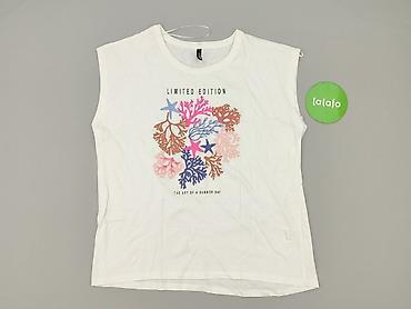 Biała bluzka damska bez rękawów, rozmiar L - Fason: luźny, z lekko opadającym ramieniem (nietoperz/dolman) - Dekolt: okrągły - Ozdoby: ażurowe wstawki tworzące literę V na przodzie - Materiał: 65%...