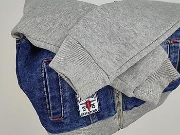 - Styl: połączenie bluzy i jeansowej kurtki (denimowy front i tył z naszywkami + szare, dzianinowe rękawy, ściągacze i stójka)