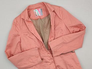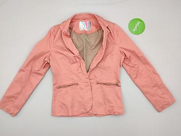 Różowy żakiet damski Sinsay BASIC, rozmiar M - Krój: taliowany, jednorzędowy na pojedynczy guzik - Kołnierz z klapami, rękawy do nadgarstka (na zdjęciach podwinięte) - Dwie kieszenie z przodu (lis...